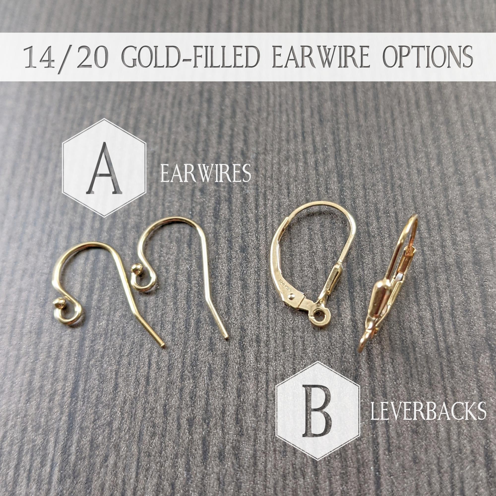 AAA white freshwater pearl drop earrings. Wire wrapped by hand using gold-filled wire. Each dangle is accented with a vermeil (14k gold plating over sterling silver) round ball charm. The earrings dangle freely at 1 inch off of gold-filled earwires. Each pearl will vary in shape and size since they are natural freshwater pearls however I do my best to pair them up properly. The general size /shape of each pearl is 10x8mm with a rice shape. Regular ear wire (A.) or Leverbacks (B.) options are available.