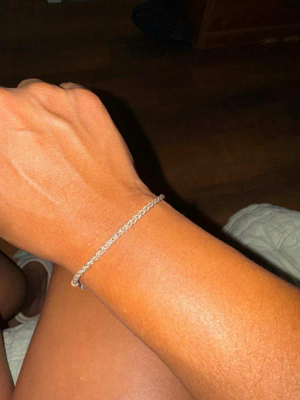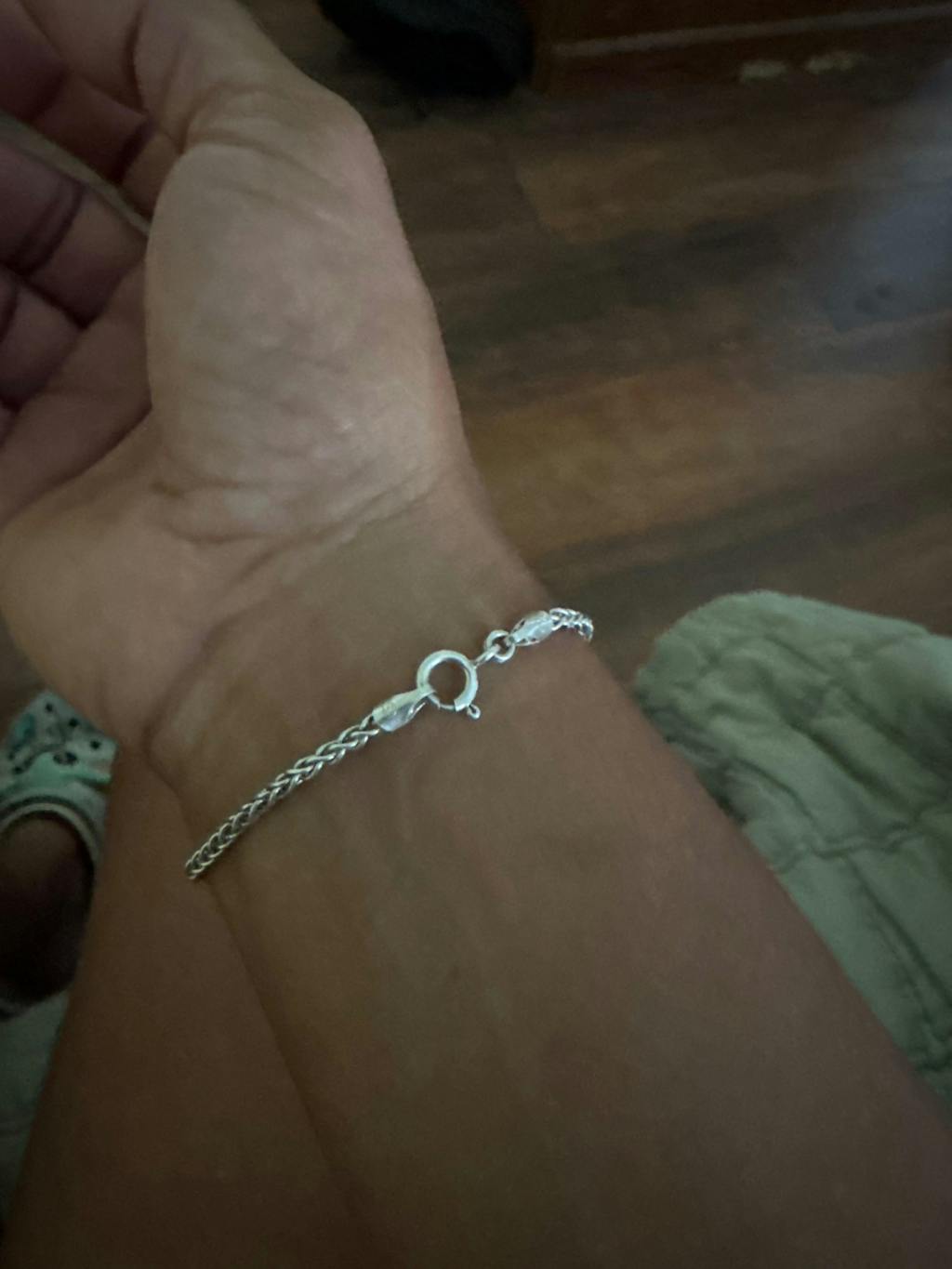The bracelet is very pretty, unfortunately I didn't read how to care for it, I assumed I could ware it without taking it off to bath,leaving it on and that it would stay shiny, So now I have to use jewelry cleaner to hopefully clean it,I want to ware it all the time without taking it off.